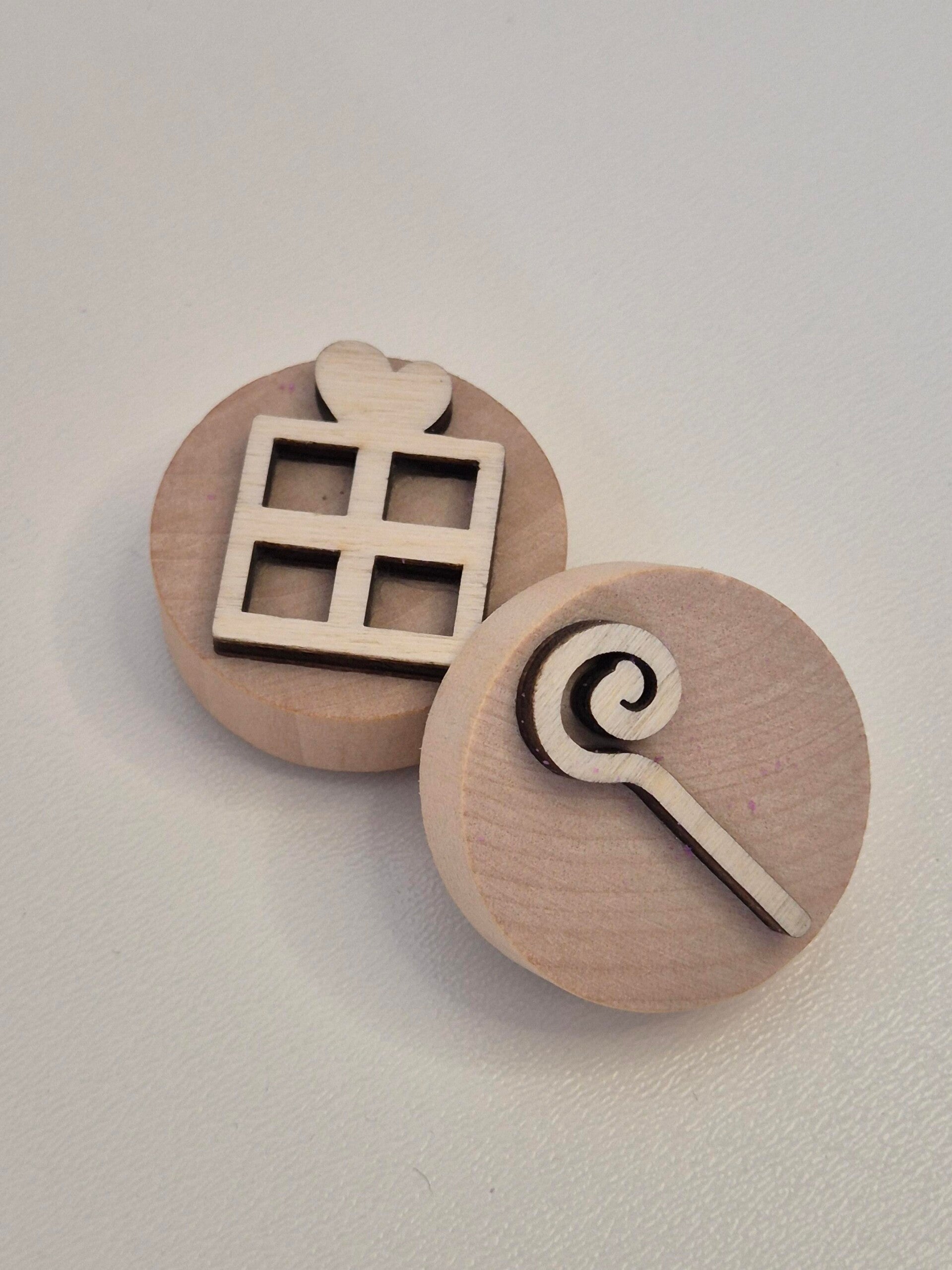 Breng creativiteit tot leven met deze houten stempelset, speciaal ontworpen voor kleine handjes en grote fantasieën! Deze set van 2 handgemaakte stempels is ideaal voor gebruik met kinetisch speelzand, maar ook geschikt voor klei, deeg of andere zachte materialen.