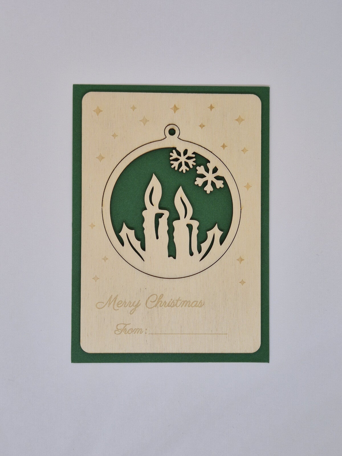 Geef dit jaar een kerstkaart die blijft — een klein kunstwerkje van hout, vol warmte en betekenis. 🎄✨